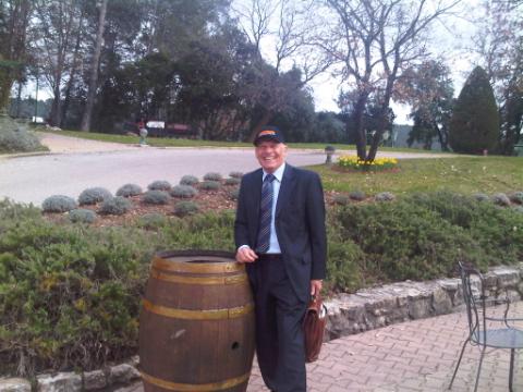 And so to the fabulous Chateau De Berne to attend an event being staged  by The Ark , a really worthwhile charity providing pastoral care  and educating english speaking people about how to deal with death and getting old in France.   From the look of the audience it was none too soon for many of them, such was the concentration of zimmer f rames (I can almost hear Pippa and Zoe screaming noooooo he cant say that…) but I was actually being dead serious!  Ok, no more jokes about dieing or getting old, I mean I am in an advanced state of degeneration myslf, at least my wife often calls me a degenerate, and thats when she’s being nice…I shall expect to hear from Peter and Judy Lynn about whatever typo I have failed to spot today, as I have on all previous occasions this blog has been published.  My picture today shows Mike Lorimer independent financial advisor who was also in attendence sporting a Currencies Direct baseball cap covering his luxuriant hair, although how he managed to force it all into the cap I will never know anyway I got my 7 iron back .   Lunch was served in the beautiful drawing room/cave where I tried the red, (Alison, you were right!) which was particularly good for a rather young provencal red, but I guess something had to be young,….doh!!
