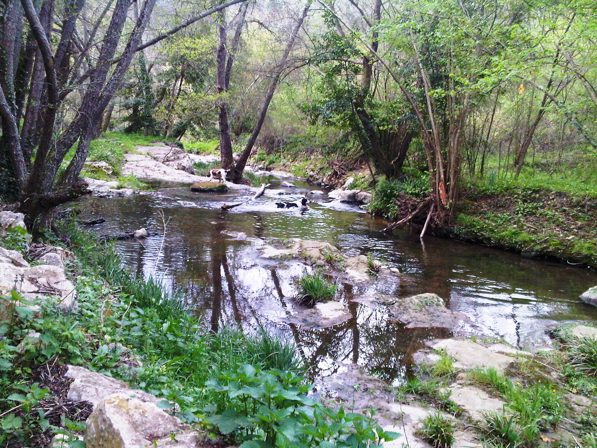 Following the interest in my piece on wild asparagus yesterday, I decided to train our dogs to find more, so my picture today shows them hard at work foraging in the Brague. The oldest dog, the intelligent one, the one that listens, understands and gets it, Max, has the right idea, he is searching on the banks, not in the river, after all it grows on land, not in the water. The other dog, Banjo, is stupidly in the river searching in the water. Regular readers of this blog will know I have at best a certain antipathy for the younger dog Banjo, but I am afraid that his excuse for not finding any asparagus – that he doesn’t speak english – is not acceptable. I think he should have been subjected to a patriot test of his english like all immigrants, before he was allowed to join the household, but as in all things Banjo, I am overrruled by the future ex wife. You may think that this is a dangerous statement to make, but like house guest and WAG Claire, she seldom looks at the dreaded screen and takes very little interest in this blog, a fact I know the hundreds of happy followers will find astounding.