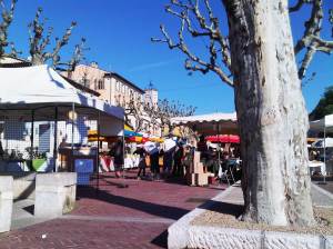 My picture today shows the market at nearby Mouans Sartoux, where you can sometimes buy things from the same traders at Valbonne market for 75% of the price they charge in Valbonne!