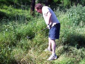 For some reason that I cannot fathom, yesterdays blog was dated 25th May, but as many happy readers will confirm there was a top quality missive on the 25th, so to those of you who chose to point this out, thanks. Less than a mile from my house is a challenging 9 hole golf course called Victoria Golf Club. I normally avoid it as it is really only half a golf course, meaning the usual clientele are either elderly or terrible golfers, or more often, both. And so I set off yesterday morning for 9 holes with Paul Thornton Allan who fits this profile perfectly. I was rather rude about Paul’s golf yesterday in this blog, and felt rather bad it, despite the fact that he had clearly not read it – I could tell as he was still talking to me. However my worst predictions in yesterday’s epistle of his waywardness off the tee were an understatement, as you can see from the attached picture which shows one of Paul’s better lies.