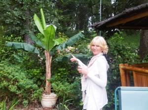 Peter Savin (or Pedro as he is known whilst in foreign climes) the losing contender in the aforementioned golf has far too pretty a wife for a man of his age, so it always a delight when the lovely and angelic Janey Savin is our house guest. She likes to help out in the garden or the kitchen and last evening she volunteered to water the plants unaware that the banana palm which nestles behind the pav is fake. She has clearly not been reading this blog regularly enough! and, as my picture today shows, she watered it thoroughly and I must say it is looking a bit cleaner this morning, but certainly no greener!