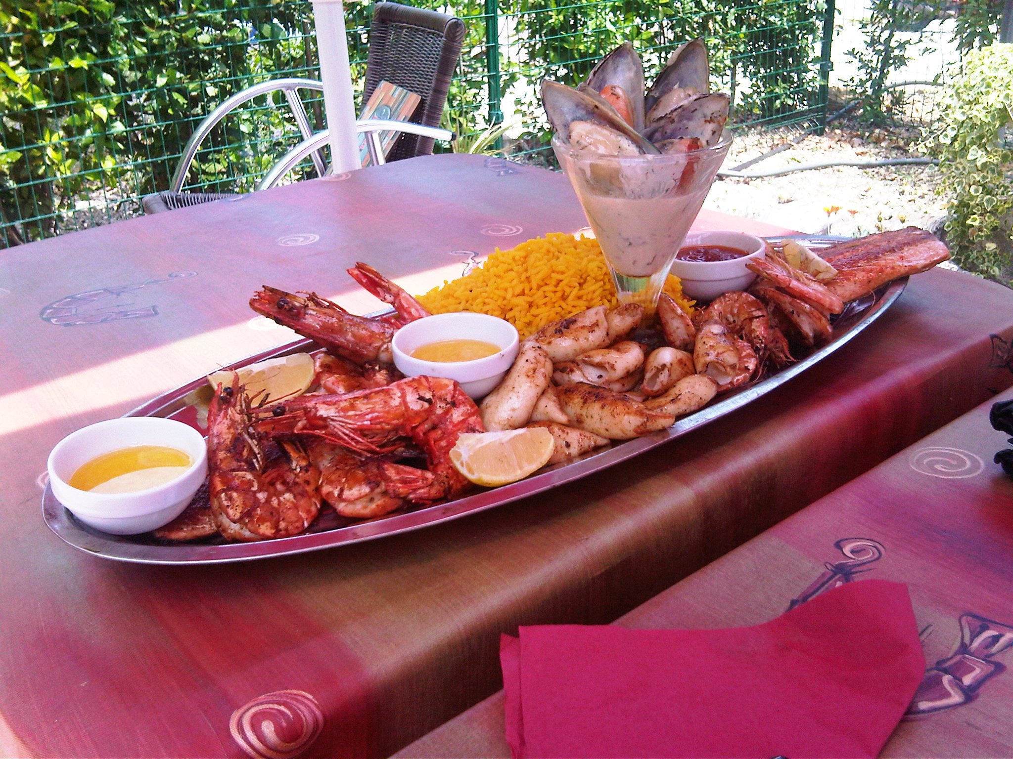 ” Been nice knowing you”  so said the resident plasterer after cholesterol laced lunch at Jimmy’s killer prawns yesterday.  I thought, when I won a tombola prize at the Careers and Lifestyle exhibition in Valbonne recently, that it was just a free meal.  However, when we arrived there to take advantage of this prize, which was to expire on 30th June, it was a bit more than that.   It was a “Millionaires Platter” at 78 euros for 2, so the quick lunch and then back to work idea did not go to plan. A picture of it is shown below;