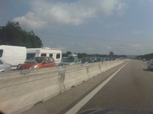 On the journey through France I am struck by the lack of traffic, well, traffic going north that is, as my picture shows the traffic going south is jammed for mile after mile, the road is crammed with people trying to escape, whilst the traffic flowing back to England is almost non-existent. I think there is a message here which if you are not receiving from me, look at the picture!