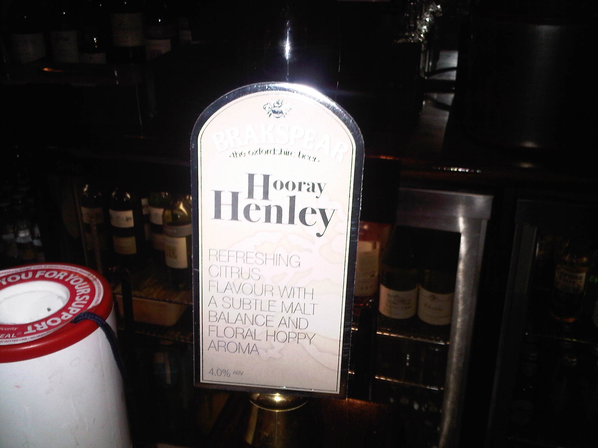 Anyway, we popped back to The Angel to see if it was any better inside, and the answer is, not much, although no plastic glasses was a move forward. I partook of a pint of Hooray Henley, mainly because of its name, and wished I had not.