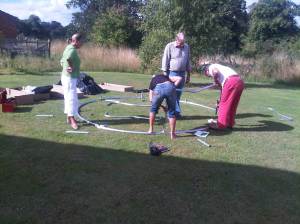 Once at the reception venue, we were detailed to build the trampoline. Despite my protestations that I did not expect to make use of such an item, eventually I took on the mantle of chief delegator and foreman, after a two-hour debacle of failed construction. Once I took control it was up in a jiffy.