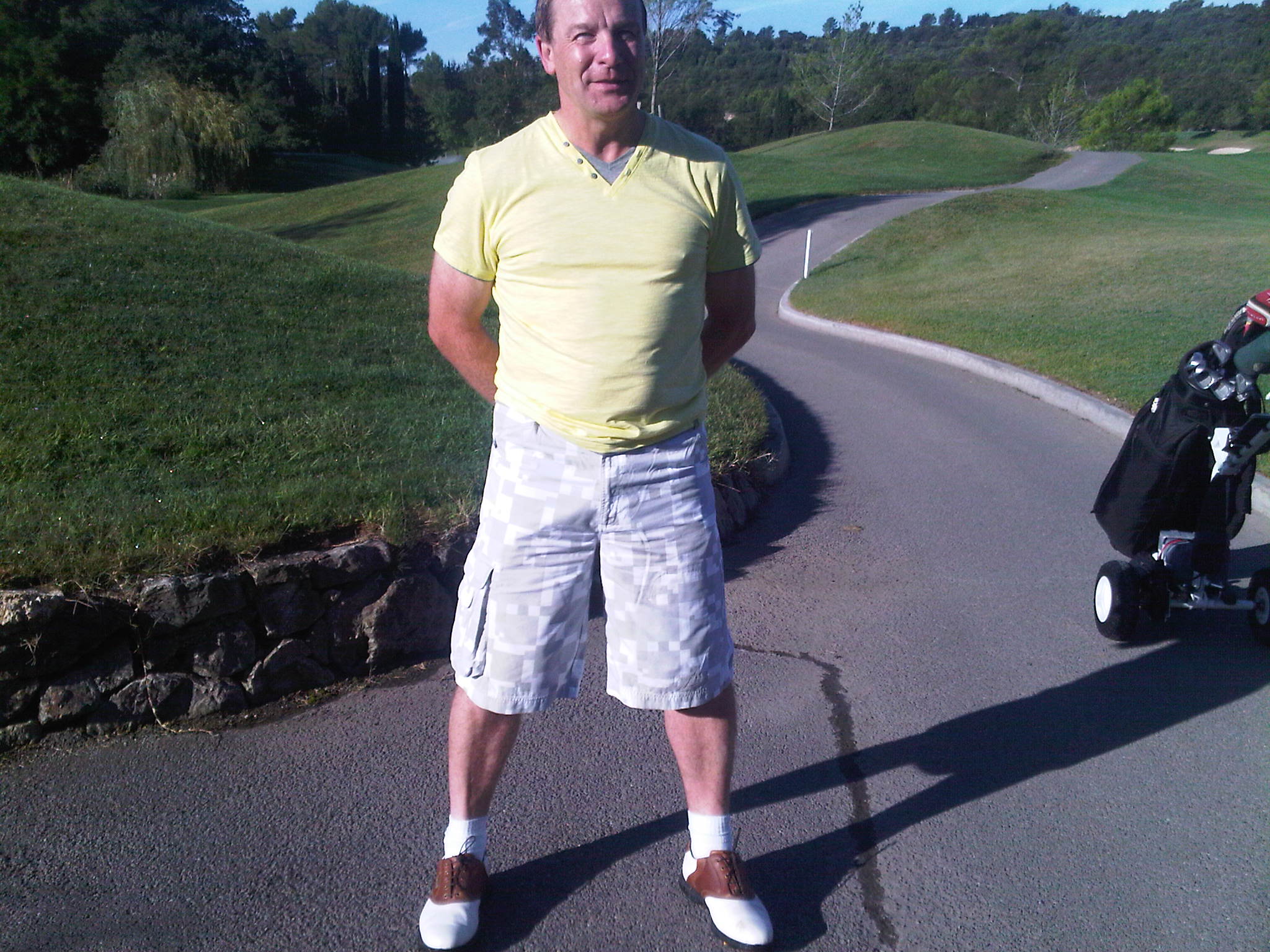 I admit to several other attempt to steer (does that have any sheep connotations?) The conversation towards the subject so beloved of my golf playing pal, with references to getting fleeced, and the like, but he would not be drawn, how very disappointing! Instead I cast my eyes a little wider for some entertainment and found gruff northerner Dave Goddard wearing these trousers.
