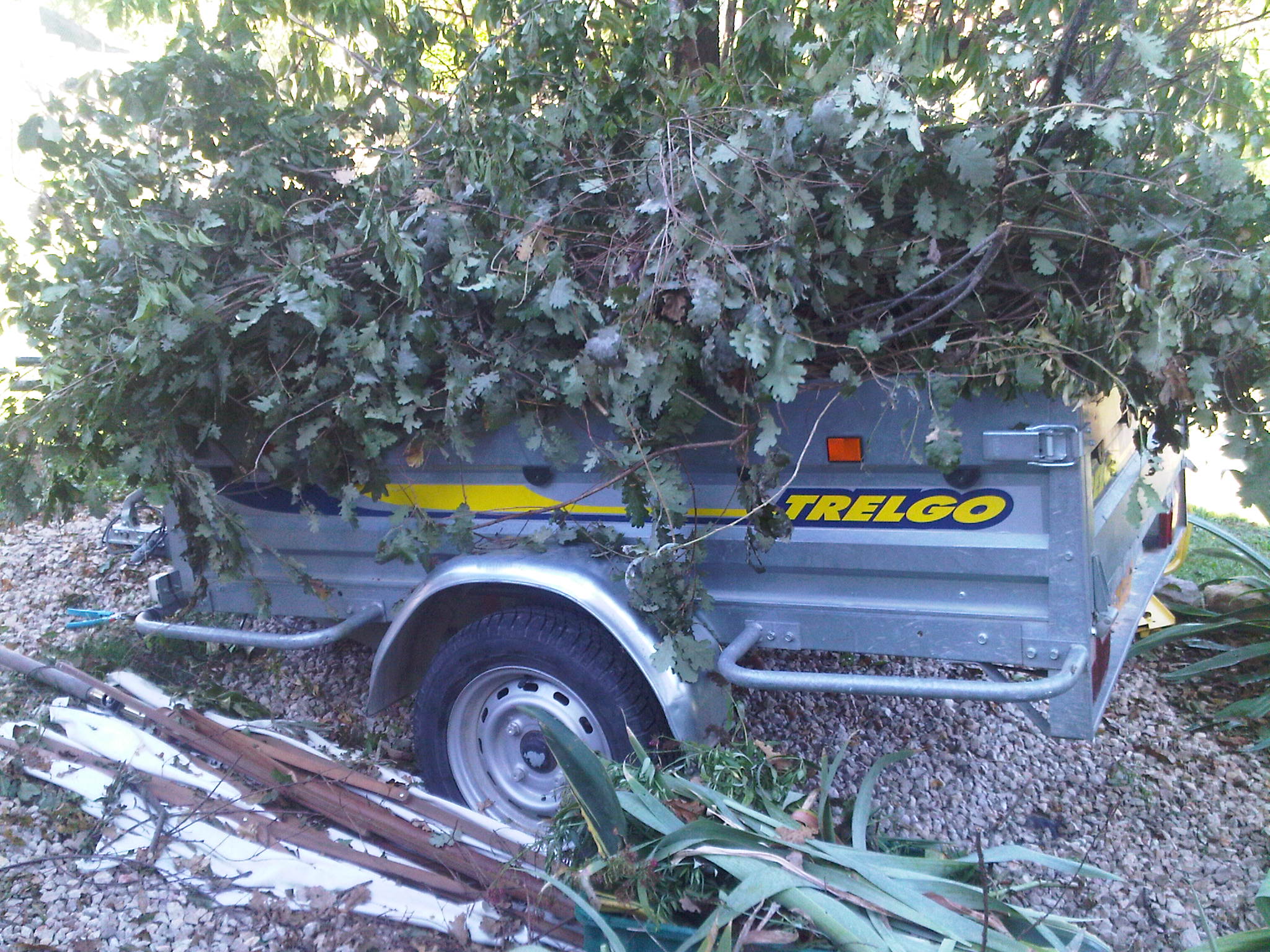 I have the delights of visiting the tip to empty my trailer. My son believes that the trailer is only half full which I guess one could describe as optimism? as my picture shows.