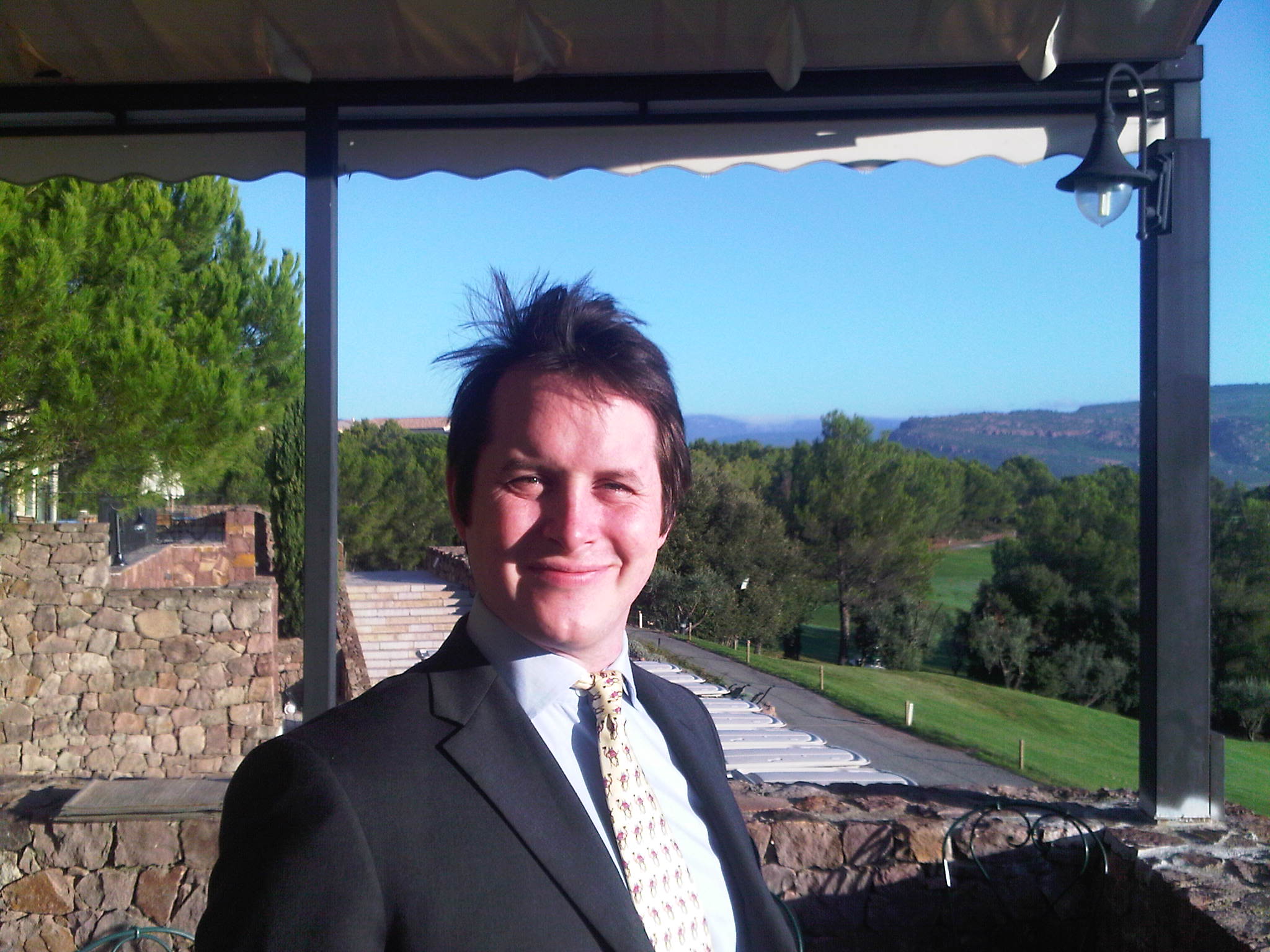 My picture today is of James Lesinski our tame dealer from Currencies Direct, taken at the seminar at St Endreol earlier this week. You may notice that hair, which is always unkempt but when I took this picture, looks like he has some bubble gum lodged in it. I just wish he hadn’t tried to comb it with the gum still in there. He believes, wrongly as it turns out, that this annoying porcupine look is attractive to the ladies. It is not, but one of the waiters at St Endreol paid him a significant level of attention, but who knows, perhaps that is what he seeks?