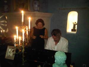 The wingco begs a lift to the airport this morning. My picture today is of him taking over the piano at the Colegrave residence a few nights ago, accompanied by his beautiful assistant, his wife Maryse.