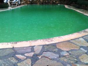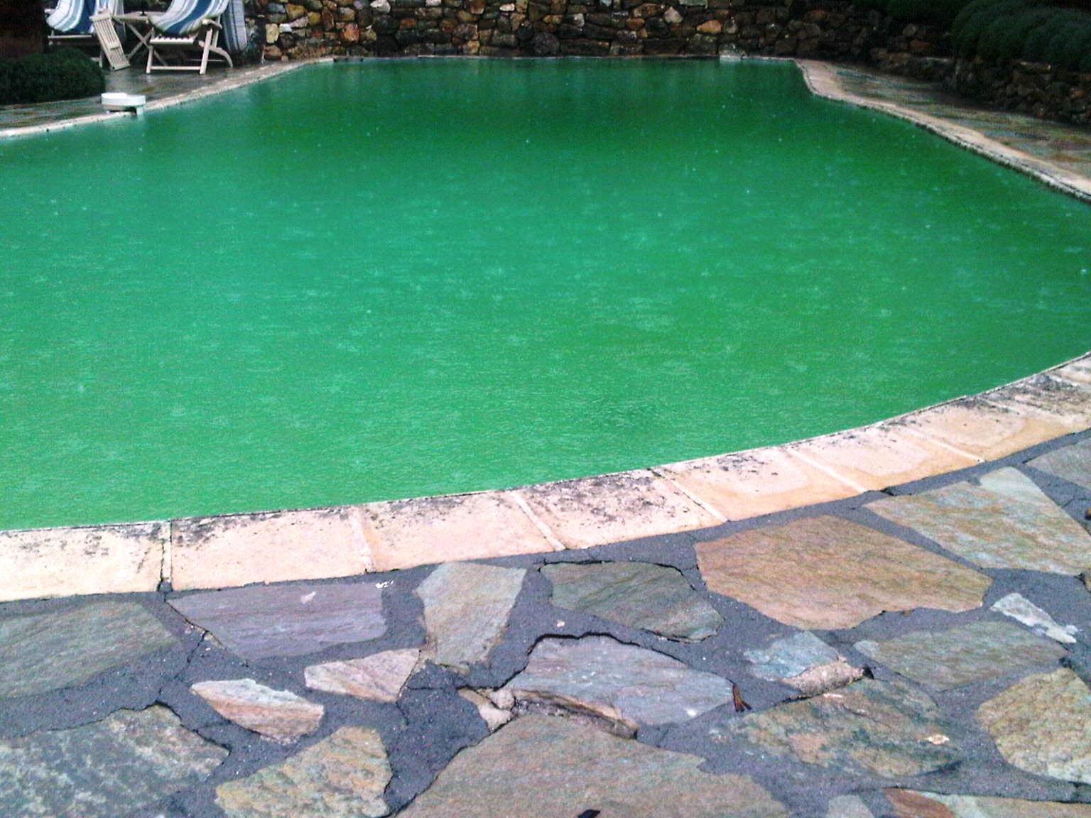 I have always quite fancied one of those new fangled infinity swimming pools, and the rain gods must have known that as they kindly created one for me in my own pool last night. Unfortunately they also decided to put green water in it which I have to say is a fashion mistake. The pool was at least a foot below its normal level before the monsoon started, as it has a leak and we were letting to run down to find out where the leak was so we could fix it during the winter. So I reckon we must have had 30 cm’s of rain at least in the last 36 hours.