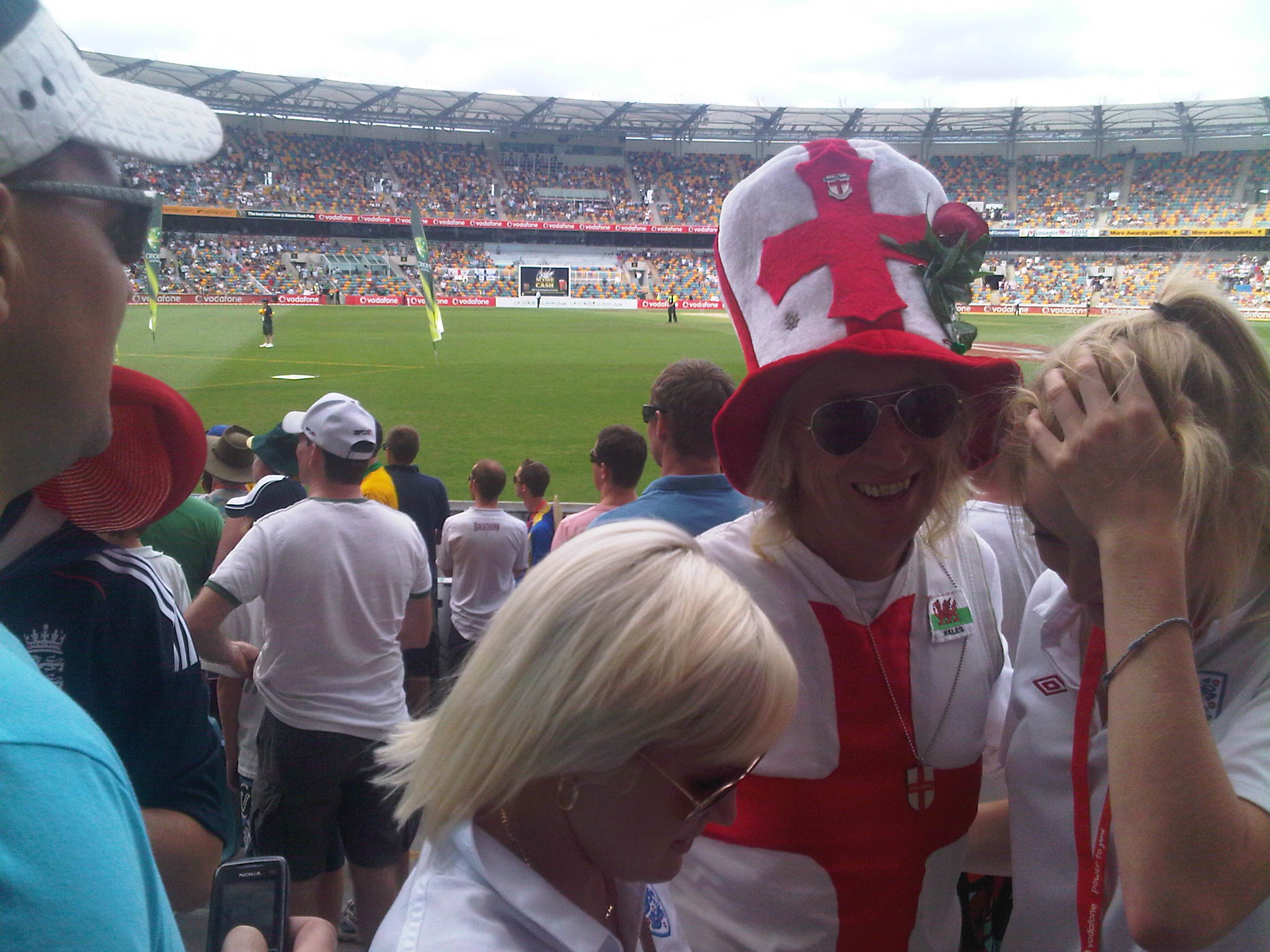 It has been a very gratifying week and I have come to the conclusion that there is a reasonably intelligent under strand to the Barmy Army, the motley collection of travelling English cricket fans, as there were several occasions when their humour was exhibited, such as when they were suggesting that Mitchell Johnson, an Australian bowler who had a nightmare match for the Australians, should be man of the match, but for England. Their singing of “There’s Only One Mitchell Johnson” on the last day made me laugh. In fact I chanced across the cheerleader of the Army in the crowd as my picture below shows.
