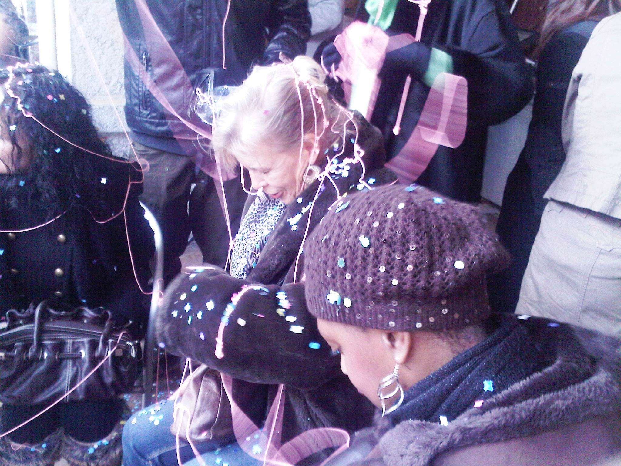 The second picture is of that nice lady decorator appearing to take a nap in the madness of the festival, or perhaps she is ducking the silly string and confetti which arrived in profusion in my wine;