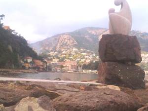 My picture today is another taken on the walk at Theoule Sur Mer earlier in the week. It is of some kind of modern art so beloved by the French, but seems to me to be a very simple piece of concrete which has doubtless been sold to the commune for an obscene amount of money.