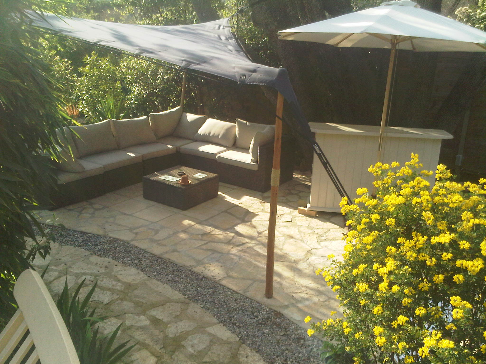My picture today is of the finished terrace, the building construction over which I have toiled aimlessly diligently over the past few days. The tent like feature is now in place, which may be of some use today if it rains on that nice lady decorators Miglio Jewellery party, to which all girl readers are invited. Us chaps will of course be having a long lunch after tennis, to avoid having to gaze upon the no doubt over priced baubles (actually here, I may side with the Reverend Jeff), or worse still, being pressed into buying them. I am only concerned at what will happen after 4pm, as the wingco has an airport run to do, so there will be no brandy (or perhaps a limited amount?) on his terrace as tradition normally dictates, and I may be homeless for a time.