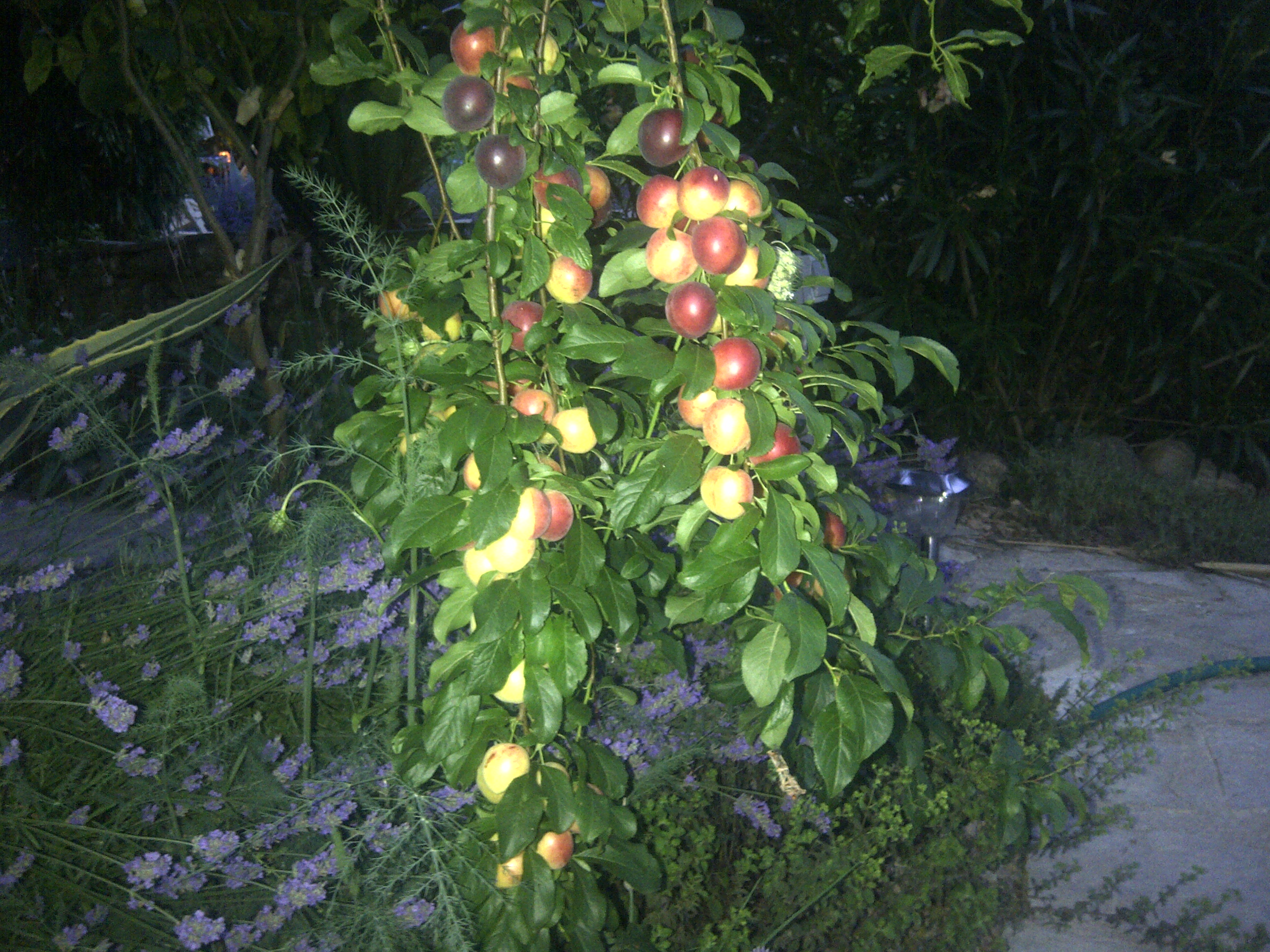 Talking of purple, I took this picture of my plums ripening nicely, with not a wasp in site, as is seldom the case in England.