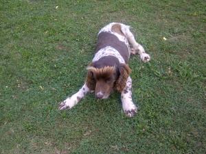 Max the proper dog is partial to a swim and regularly makes use of the swimming pool, indeed he gets more use out of it than anyone else in our family, it is sort of his private pool into which the odd guest and family member are allowed into occasionally. The problem is, that he is in it so much that he had managed to bleach his eyebrows in the chlorine, as my picture today depicts.