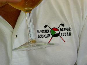 At lunch, Bill was sporting a golf club shirt as my picture above shows. Many of us golfers have these, from Wentworth, Troon, Sandwich or Celtic Manor and many of the famous golf courses around the world, but how many of us golfers have a shirt from a golf course in war torn Darfur in the Sudan? If I could have predicted one of my friends to have such an item it would have been Bill Colegrave, because of his previous experiences and interest in Afghanistan, and Africa, the former of which he has written about in the past.