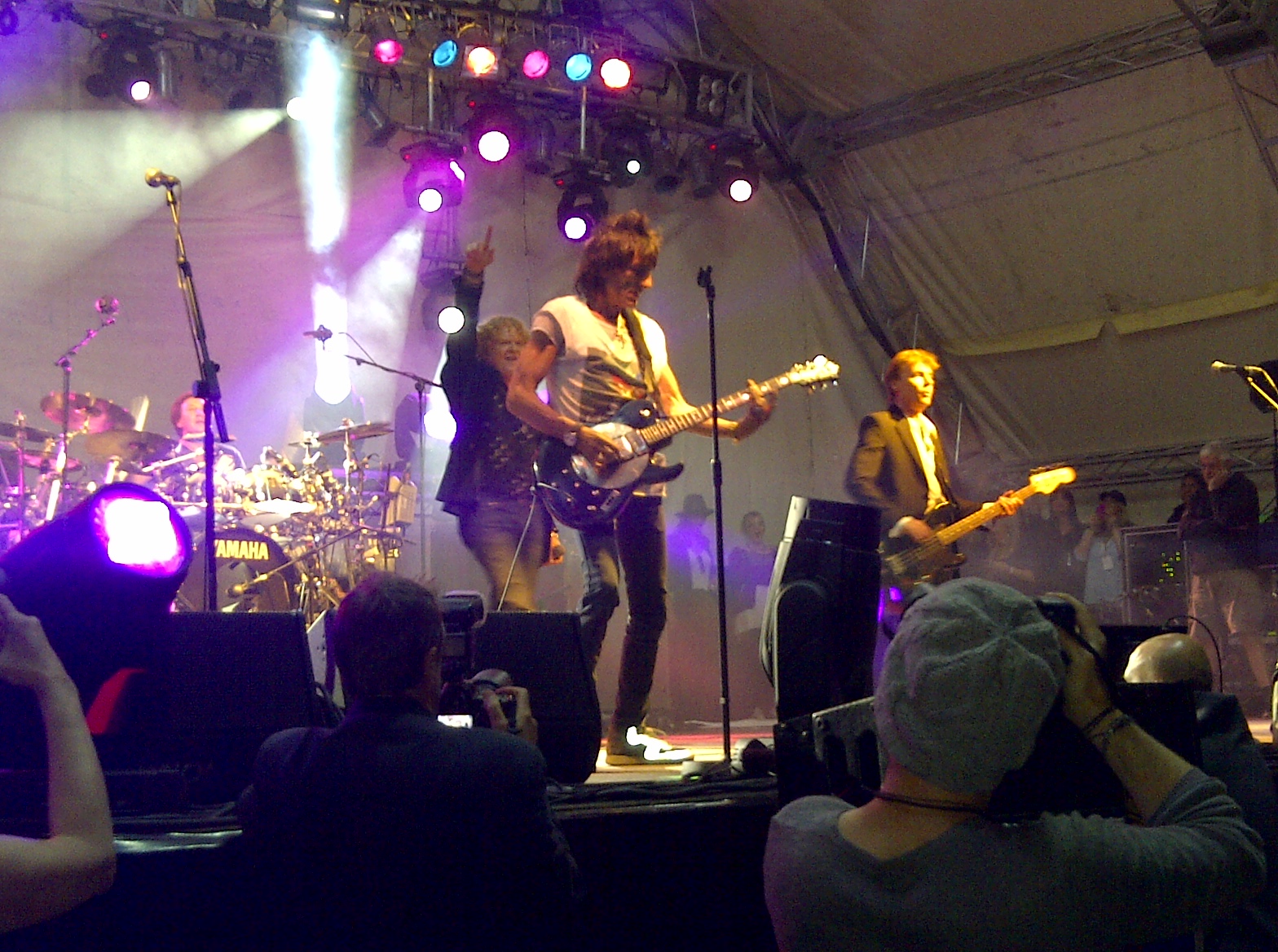 A slightly lack lustre start to the show was enhanced by the lighting man and sound man clearly being asleep, and at first I thought the low mix of Mick Hucknells vocals was a godsend, but later, at least the sound man started to hear that something was wrong (a fact noticed by almost everyone else in the crowd) and the show improved, with Ronnie Wood on sparkling form, dedicating the show to the late Amy Winehouse who died on Saturday. The high spots were their versions of “Tin Soldier” and “All Or Nothing”, and with Kenny Jones and Ian Mclagan the only two surviving Small Faces on stage, it was as close to a reformation of that iconic 60’s group that you could get.