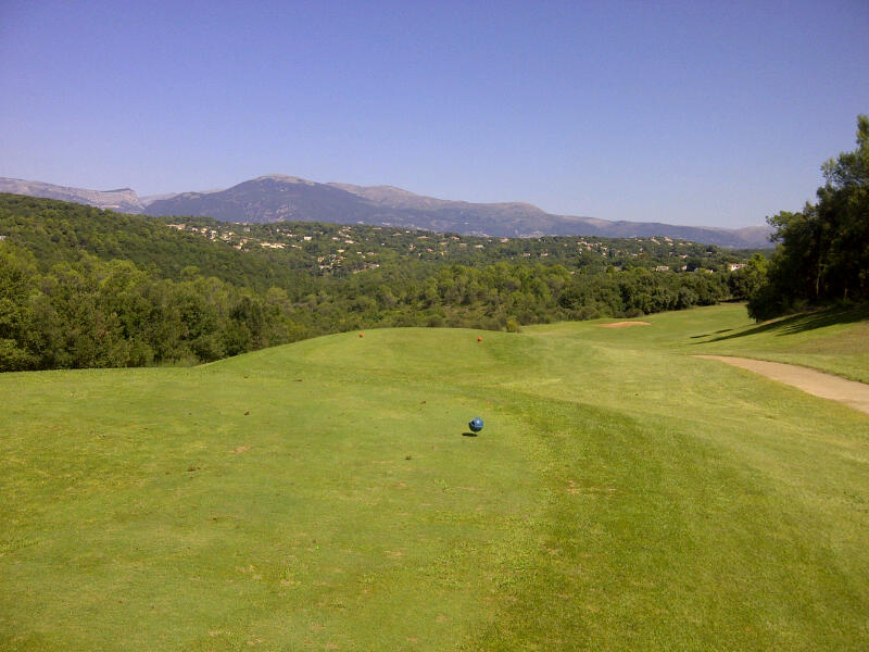 View from the tee of the 6th hole at La Provencal. In the distance, you may be able to make out 4 lost golfers. those following this in the UK, please note the colour of the sky. It is called blue.