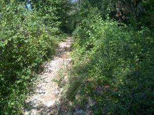 Recently I decided to test out the sat nav on my car, to see if there was a quicker way of getting from Valbonne to Nice airport, and was thrilled to see a back road marked that appeared to take about a mile off the trip. However, when I attempted to take that route, I was confronted with this, my picture today, below. Just a tad overgrown for the Merc don’t you think?