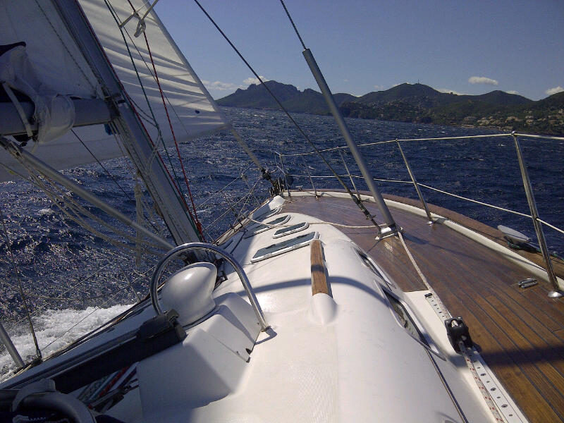 Wind? no one told me about the wind. The mistral down here in the Cote d’Azur often blows away bad weather, and is often very welcome, clearing the air and producing sparkling sunshine, but when one is on a sailing yacht expecting to be basking in the sun and drinking for most of the day, the last thing you want is wind. This of course was not how the hardened sailors saw it, they were revelling in the opportunity to put sails up, and splicing the main brace, and shouting “genoas to the fore” and all that jargon about which I know nothing. I had in mind a few glasses of champagne on the poop deck (I think that is what it is called, perhaps that is where the toilet is positioned?) being able to stand as we left the harbour legs slightly apart, hands behind the back swaying ever so gently as the stabilisers took effect, preferable adorned with a cap saying “Captain” and issuing orders to the crew like, “chocs away” (although why sailors think they need to hide the chocolate is a mystery to me), “contact” (another expression that taken out of context could have alarming results) and that sort of thing. What I actually  got was something quite different.