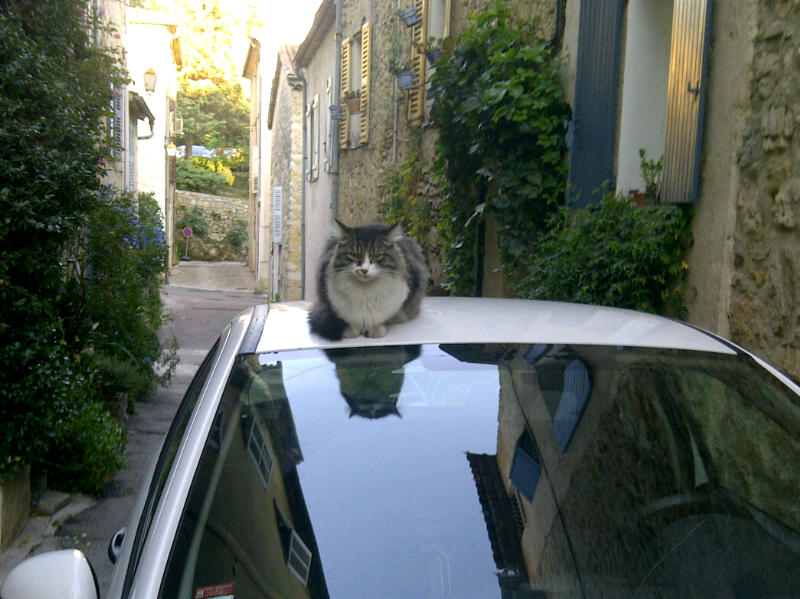 My picture today was taken in Valbonne earlier in the week. The car should not have been parked there, but I think leaving a guard cat on its roof is an interesting thief deterrent, I wonder if that would count as an alarm for car insurance premium purposes?