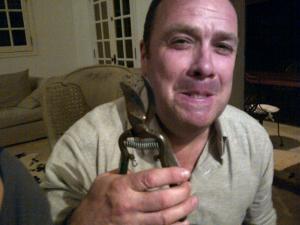 My picture today shows the ugly side of jealousy in the shape of Mr Clipboard armed with some garden clippers clearly intent on removing an amount of my AFH which probably equals or exceeds the entire amount still growing on his head.