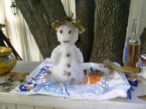 It is the snowman pictures that get me. Master Mariner Mundell for some reason of a higher order than I will ever understand decided in his infinite wisdom to collect a large lump of snow-like ice that he discovered outside The Source and bring it back to the web (as our outside bar is known – easy to get stuck in, very difficult to escape). He then proceeded to mould it into a miniature snowman and amused himself by dressing his new creation in various guises by the inventive use of natural items available in the close vicinity. Quite why some photos show Mr Snowman with an unfeasible large erection is something that I do not recall but at least I know it was a he. That I have chosen to use a non aroused picture of him rather than one in his full glory as it were is mainly down to the fact that the more erect photo is of poor quality, but if there is sufficient clamour then I may give in a feature it tomorrow
