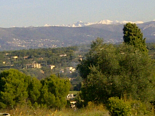 The traditional lunch at Auberge St Donat is now such an entrenched habit that there was not even a discussion, we went straight there, us to bask in a victorious glow, them to sulk in the shadows of defeat. Good shadows were also in full view yesterday where I took this picture on my morning cycle ride (yes, it has come to that to deal with a slight expanding of the waistline). I had considered the gym, but when I asked the fitness trainer which machine I should use in order to regain my allure to the opposite sex, he suggested an ATM machine. The photo was taken from the Peyrebelle area of Valbonne looking from Valbonne up towards the Southern Alps and shows the first snows of winter well established, ensuring I think a timely opening of the higher ski resorts in a couple of weeks.