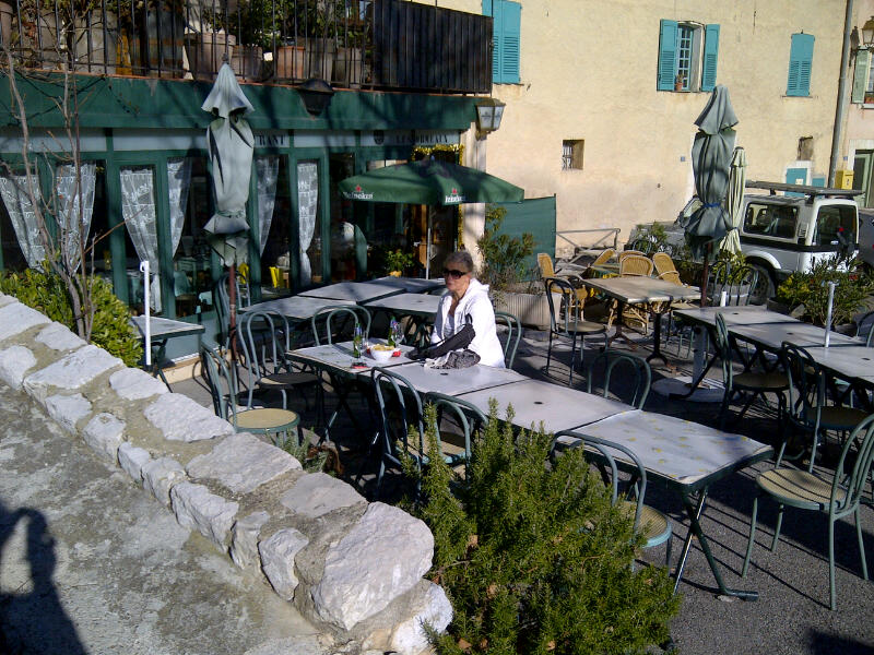 Cipieres is a beautiful village in the hills above Gurdon and below Greoliere where despite no visible signs of snow from where we were it seems Greoliere Les Neiges, the small ski resort above the old village, have a couple of ski runs open. The walks are breathtaking, and by that apart from being very beautiful and dramatic I mean so steep they take your breath away so the final piece of the antidote to walk-induced thirst was to buy a beer in the sunshine at Les Ormeau, one of the restaurants in the village.