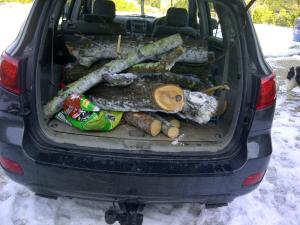 You, as a brit, know that once a tree lands on the ground, it is illegal to pick it up (in the forest).Your own forest code says you are breaking the law. Here also. To bad you covered your number plate.