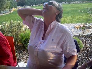 I must draw a discrete veil over proceedings mainly because I have either forgotten them, I have been bribed or the details are far too disturbing even for this daily look at the lives of the idle rich in Valbonne, save to say that the lovely Suzanne must have had the entire Valbonne stock of chickens slaughtered for the meal which for once involved no barbecued road kill, Peachy having been forbidden to unveil the barbeque.
