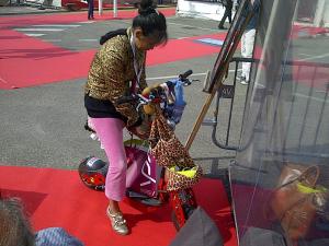 pink and leopard skin, set off beautifully against the red carpet and red wheels