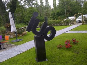 Anyway, back to the Auberge De La Source. We managed to secure a couple of drinks but they only open for dinner on Friday and Saturday. The garden area has been delightfully revamped, even to the extent of the siting of some typical modern art pieces. I took this picture of one of them. As you can see it is a flawed piece as I am certain the artist was trying to evoke a sense of fair play, of ensuring that one pays ones debts, but when moulding this worthy creation perhaps more attention should have been spent on the spelling. IOU is just three letters. How is it possible to get them in the wrong order?