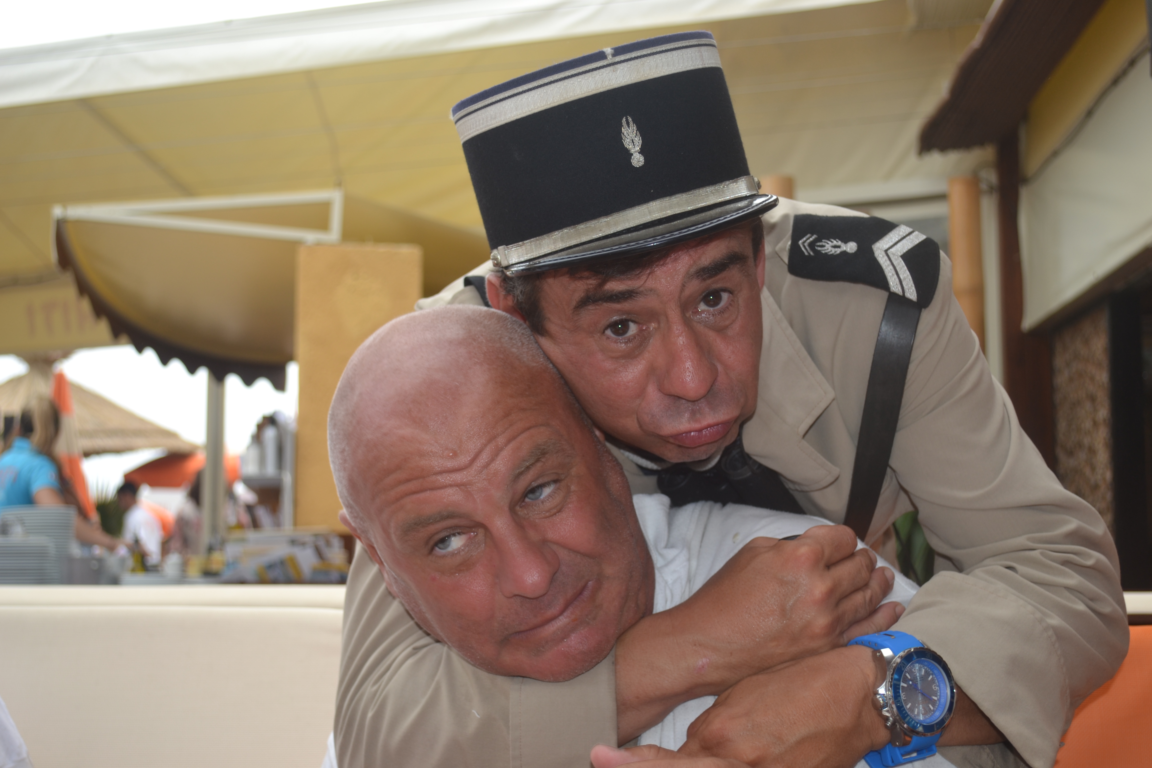 By the time we got to the restaurant, his loud pronouncements on his chosen theme attracted the attention of the local gendarmes as my picture today captures. I suggest that Largy, the chap who seems to have lost his hair, is exhibiting a love of men in uniforms. At one stage he even made the subject of getting tied up to a mooring boy buoy sound a little tacky. His stated aim was to form the BBB party, a political organisation to Bring Back Buggery. I could go on as I have notes on my blackberry about “potage d’homme” and several other items, but enough is enough.