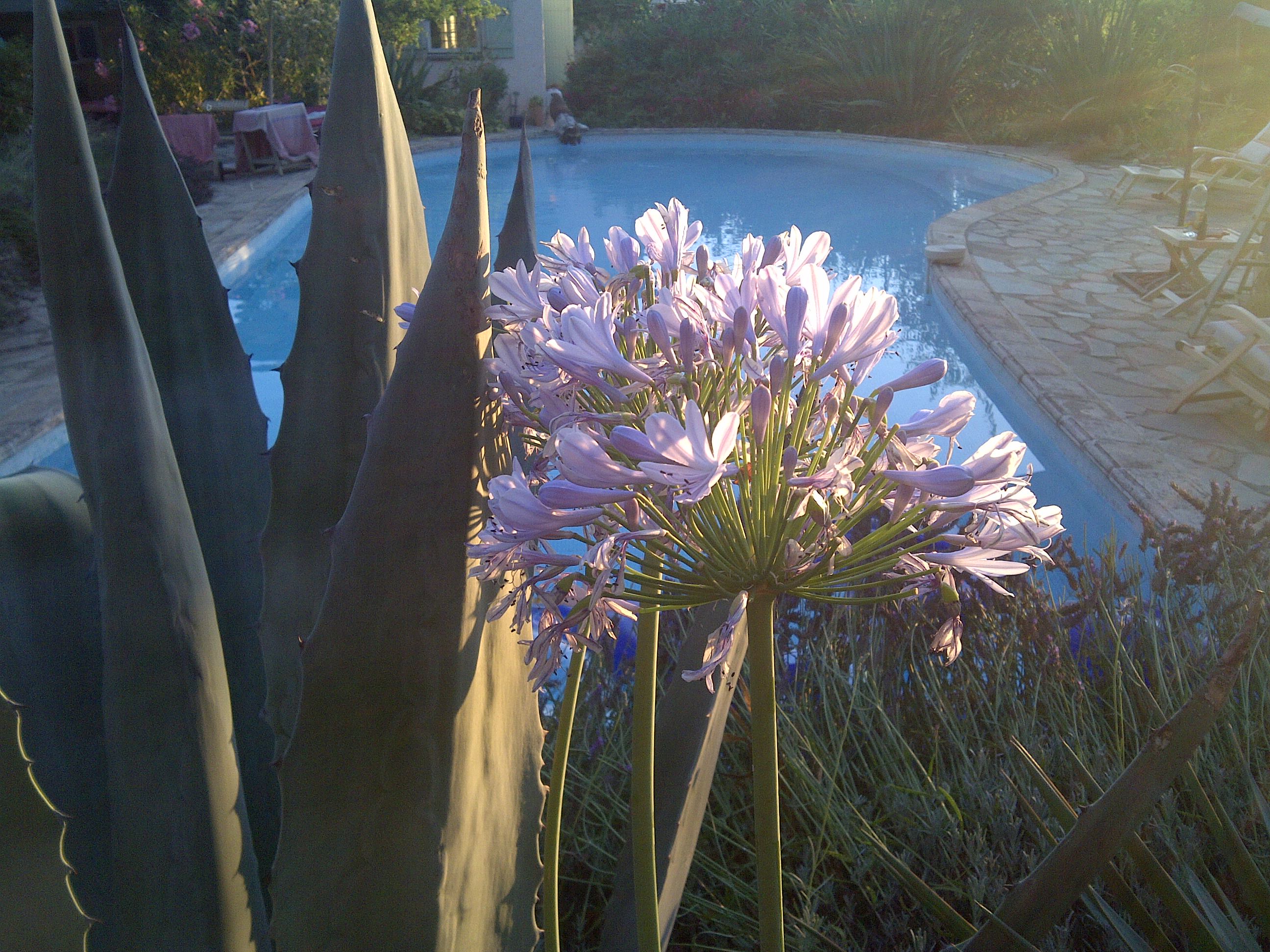 It may have been the heat, or more likely that fact that an airport run (for a Currencies Direct client) which precluded him joining Mr and Mrs Clipbeard and that nice lady decorator for lunch at the Vignale that was the problem. After lunch, and a siesta, I awoke and took this picture of some Agapanthus just in bloom by the pool. All is well in my world at the moment but literally the storm clouds are gathering.