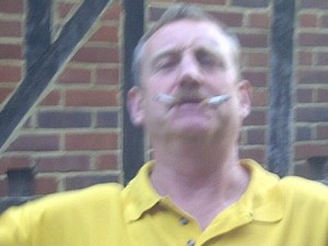 I think he was trying to apologise for a noisy party which had overflowed out into the pub garden the night before, and for “Singing George” who had given us a practical and loud demonstration in the pub garden of his lack of singing talent and who is pictured today. George, who had clearly imbibed freely and substantially, is well known locally for his propensity for ad lib singing after more than a few drinks in a style which combines the worst of Pavarotti with the worst of the Port Isaacs Fishermens Friends. He is a confirmed non smoker as he attempted to illustrate in today’s picture.