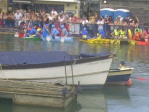 The “race” is one is the highlights of the Arundel Festival, an annual event which we witnessed yesterday. I have so many pictures of it but none do it real justice so this one will have to do. You will notice that one of boats has. Two. People dressed in blue telly tubby like outfits. It capsized just as the race got under way. As far as I am. Aware nobody frowned but that was more by luck than judgement.The only other annual event of which I am aware that has a similarly lunatic element is the Todd River Regatta which is held in Alice Springs in Australia. That involves teams of people putting their feet through the bottom of boats and running 10 miles down the Todd River which is dry at that time of year. However, when I was there a few years ago it was cancelled as there had been some vicious thunderstorms the river was flowing. Imagine, a regatta cancelled because of unexpected water.