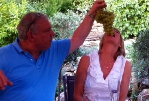 Peachy and Suzanne are (which means she is) looking after our house from next week onwards for the foreseeable future, due to my exile to England foisted upon me by President Sarkozy. If tax is fair I am happy to pay it, when it is patently unfair then I will do everything to avoid it, hence our move back to England. But let us not dwell on the depressing mid-term prospects, let us instead dwell upon the uplifting events of this week in the lovely Cote d’Azur and the benefits of Currencies Direct. My spirits were lifted as soon as I received this picture of the lovely Suzanne apparently enjoying the attentions of that nice lady decorators brother, Hugh Brampton. Surely there are other ways to eat grapes?