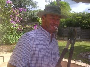 It is this malevolent side to his character which I have nearly captured on my picture today. Undoubtedly, he is jealous of my luxuriant moustache and the attention to which I am subjected by almost the entire female population and although he tries to hide it (actually now I come to think of it, he does not try to hide it) I believe that he wishes my moustache physical harm. Please note his grasp on the garden loppers in today’s picture. He was heading towards my moustache at the time.