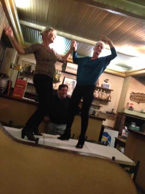 I was pretty pleased that yesterday was a later start than Saturday for my MIDEM appointments. I think a first meeting at 1pm is quite early enough, especially after another big night in the Valbonnaise the night before. I had forgotten that things got a bit out of hand when that Nice Lady Decorator joined the lovely Chantel, who owns the joint, dancing on the tables. You would have thought that after her recent triple salka over a table whilst dancing on another table at lunch with the Wyatt Earp of Arundel, the lovely Kathryn just a week or so ago, she would have exercised more caution, but in her defence, she has been at the tender mercy of party provider Peachy Butterfield for much of the day. I have a picture below that captured the danger to which she was exposed.