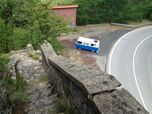 Anyway, exhausted after several near pedestrian wipe outs and 200km mostly uphill, and of fighting to keep Bluebell on the road, we made it close to Imperia on the Italian Riviera where we made camp. There is nothing gay about that. It was on a campsite called Frantonio. They have a deep recession in Italy, the campsite was just about full, there is no restaurant within 3kms, but was their very attractive looking open air restaurant open? Oh no. That would have been too logical. A captive audience of some 200 people on the site and you close the restaurant. It is probably open at Christmas when there is nobody here. This an illustration of the commercial aptitude of a stunned tortoise. Perhaps they were closed because they serve Italian food and nobody likes it?