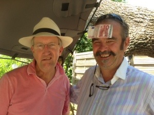 Charley the Spy and his lovely wife Lizzy finally departed yesterday morning, but I managed to get a photo of of two golfing pals, one rather happier than the other, after the ceremonial handing over of the customary 10 euro wager (£8.50 or so at today’s very competitive Currencies Direct exchange rates). It was a relief as they were entirely to blame for the pictures on Facebook yesterday relating to a certain Decorating operative dancing on the roof of her car after lunch yesterday,will have to wait until tomorrow, No, I have no idea why she would want to dance on her car but perhaps there were no tables available?