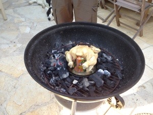 It seems that a new recipe was the reason for all the noise and so, last night, dinner came in the form of “beer can chicken”. If you are eating your breakfast whilst reading this, please look away now as I am going to attempt an explanation. It seems that preparation of this dish involves first opening and disposing of half a can of beer, which is normally something I can deal with quite easily, but then things take a turn for the worse. I don’t want to go into the actual mechanics but it seems said semi depleted beer can is then inserted in the chicken, in much the way normal people would insert stuffing and…no. I am not exactly certain what follows but I can assure you it is not very edifying. Peachy Butterfield’s northern chicken farming gay friend, Oven Ready Eddy, will be wincing when he reads this.