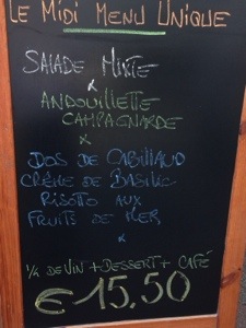 Before retiring, I had a conversation with the cadaverously slim Nick Peeeeerrrch, as he likes pronounce it, who had joined us for lunch. I say slim as he has substantially less body weight than the three other gentlemen at lunch. He is having trouble with pigs. Wild boar, which are quite prevalent down here and very scary if you come across one in the forests, can be enormously destructive to lawns, tearing them up in much the same way as a rotovator. They have been routinely breaking into his garden which backs onto the forest. He was asking whether any of us had a roller and seemed a little put out when I told him I had once had a Bentley. It seems he wanted a garden roller. The only pig trouble I had was with the andouillette from yesterday’s menu pictured below.