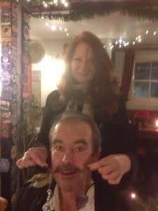 On Sunday, at the gathering at the Kings Arms at lunchtime, I had the idea of using my now well formed Dali moustache to make just that statement. I had suggested that something subtle would be my preference, perhaps a little laminetta woven into the moustache hair, but flamed haired siren and beauty Carolyn took the idea a stage further than good taste as my depicted in picture today, showing what she thought should be done with my luxurious Mo. I had considered making a joke about her having her hands on my baubles, but decided, on balance, that standard should be maintained so made the decision not to mention it. I should not like to see comments about this column being a handful.