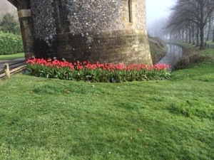 Following my comments yesterday about a crapulous cricketing catastrophe in old Ceylon, where The mighty England were thrashed on the cricket ground in the 20:20 World cup by a part-time team of tulip growers from Holland, I happened upon the display in today;s photo at the entrance to Arundel Castle. Very pretty and much prettier than the cricket.