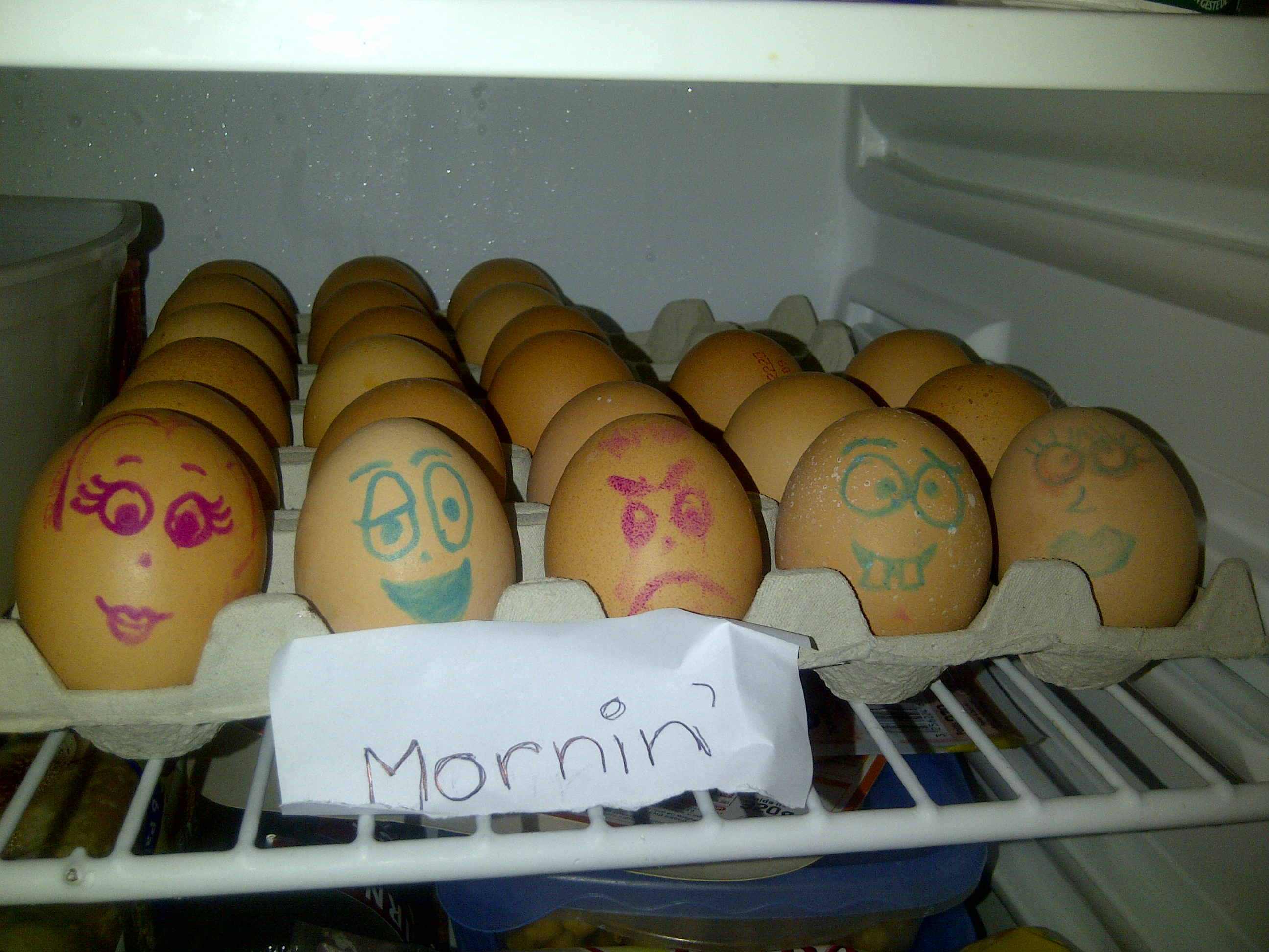 Sprog 2 departed yesterday back to England to do some work experience at Flying Pictures who do most of the aerial stunts for James Bond and Harry Potter amongst others. Before she left she kindly made her mark on the eggs in our fridge as today’s photo shows. I think I can see the bad one. I think it is called Banjo. That nice lady decorator described him as a natural gun dog. For me the gun part works, as long as it was pointed at him. You may think I am being a bit harsh here but I am fed up with going to the supermarket each day to replace the cheese Banjo has stolen and eaten the day before.