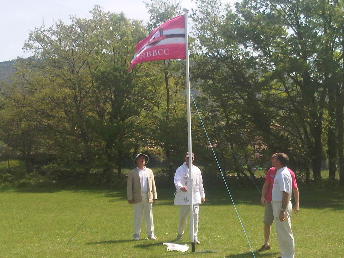 Now, I almost made it. The bar was set high, 3 days without a drink, and at 6pm last night, when I was due to play tennis, I would have successfully completed my mission in total, but then with tennis postponed because of the non availability of the wingco, (very bad show) the news was received that my daughter had been accepted into the most expensive school in Christendom for her A levels, and there was unconfined joy throughout. At this stage no one had addressed the cost of such success, which is why the champagne was opened and any number of teenagers arrived to help celebrate and enjoy my largesse. I took a picture but it is too graphic to publish, there are so many empty bottles, all of which I have paid for, luckily in Euros, that it was for too distressing for me, so it its place we have a nice picture from the cricket match at the weekend where the Hammer Bottom Butsers were ceremonially raising their flag, in the same way that queen does when she is in residence. I am just glad that they did not raise their game to such heights. I am also glad that there was no other reference to queens at all in the raising ceremony, especially as I am about to depart to Venice to meet with a couple of dear Norwegian gay friends.